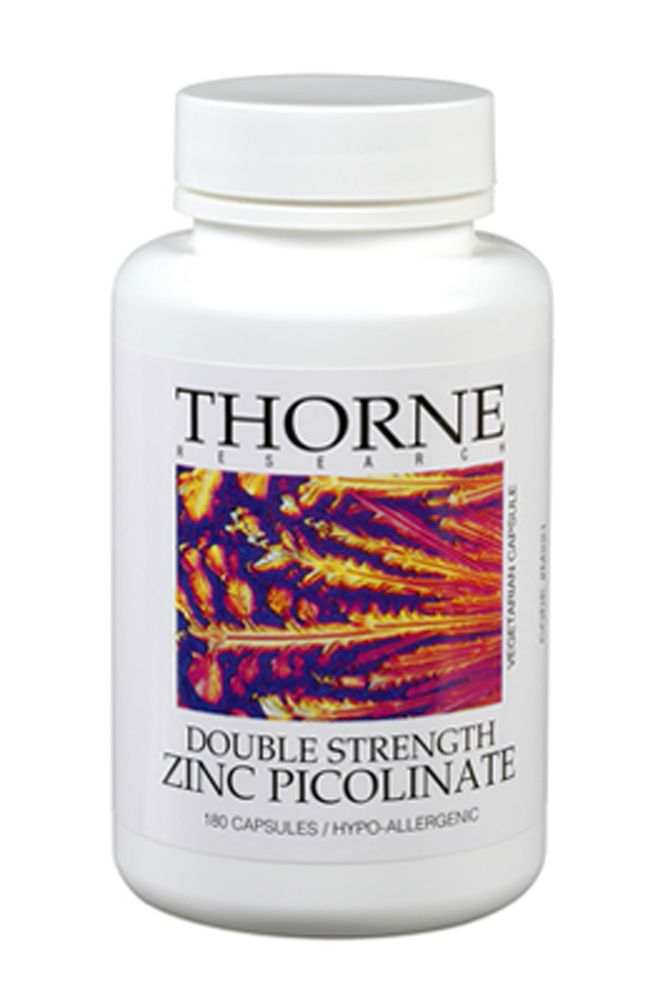 Zinc is essential for growth, immune system function, testosterone metabolism, as a cofactor for the antioxidant enzyme superoxide dismutase, and for many other functions in the body. Zinc is involved in the functioning of over 200 enzymes and plays a key role in genetic expression, cell division, and growth. Zinc deficiency has been associated with adverse impacts on a number of structures and functions of the body. Individuals susceptible to zinc deficiency include the elderly, the immuno-compromised, those on parenteral nutrition, and burn victims. Clinical studies demonstrate zinc supplementation has a beneficial impact on connective tissue as well as reproductive health and eye health. We use zinc picolinate for immune support, recurrent colds, flus and oral herpes, and for gingivitis. It also has important uses for acne, benign prostate enlargement, boosting sperm health and count, and for relieving inflammatory arthritis, tendinitis and plantar fasciitis. We also use it for gastro-esophageal reflux, or GERD: even though zinc carnosine is traditionally used for stomach health we have found the picolinate to also be effective.