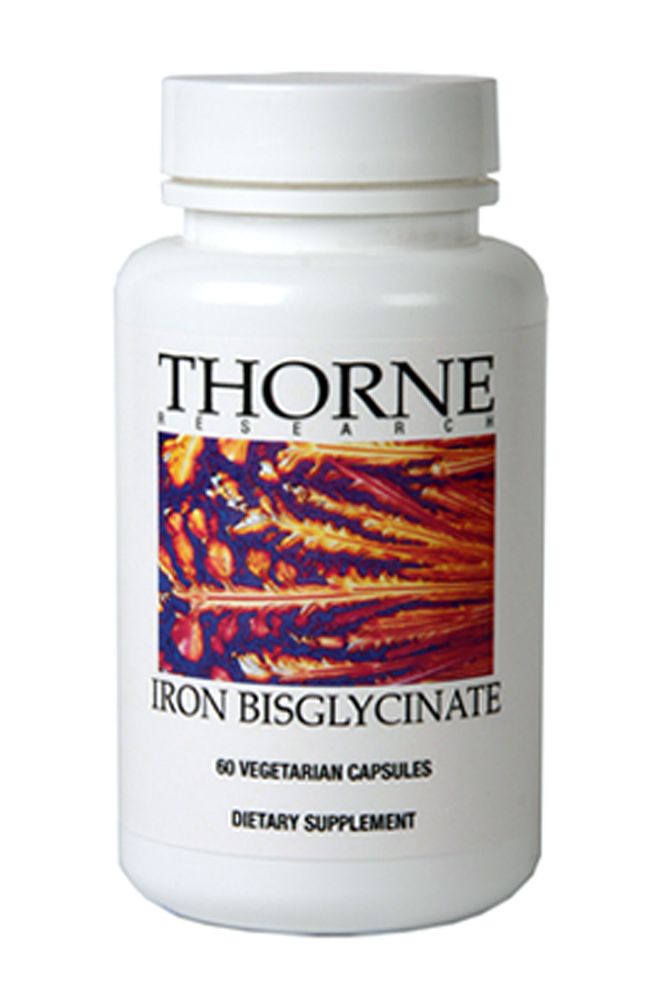 Iron Bisglycinate has several major advantages that we have seen, over other formulations of iron. It is almost always non-constipating, and very rarely affects the frequency or texture of bowel movements, even for patients with a history of slow digestion or chronic constipation. Some of our patients need 50 or 75mg. of iron daily, and in general they don't notice any change in digestive function. Secondly the iron is in a chelate form, attached to the amino acid glycine, which is a protein building block, and so the body recognizes the combination. Iron chelates are especially well absorbed, far better than inorganic sulfate. We track patients' iron needs by measuring blood levels of ferritin: This is the body's savings account of iron. If ferritin levels are low and iron supplements are needed, the iron must be in a highly-absorbable form or months of supplement-taking are ineffective. Iron Bisglycinate has worked well in our practice to bring ferritin levels up at a steady, healthy pace. This formula also has no magnesium stearate, which is often used to pad pills, and no other lubricants.