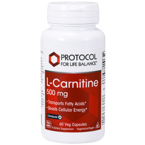 L-Carnitine is the therapeutic form of the amino-acid carnitine and we like the purity of this encapsulated version from Protocol For Life Balance. It is crucial to be sure that there are no traces of D-carnitine, the mirror image isomer, which can cause muscle pain or weakness most likely because it displaces and interferes with use of the natural L- form.
