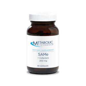 Furthermore, SAMe with Cofactors provides the necessary amounts of vitamin B12 and folic acid in the right proportions for SAMe to work. These cofactors are required with SAMe for the methylation functions and sulfur-reactions that bring mood, nervous system, joint and liver benefits. This formula also includes vitamin B6 to ensure that SAMe is efficiently cleared and to prevent homocysteine elevations. Our patients have reported notable and ongoing improvements in osteoarthritis pain on SAMe with Cofactors, sometimes noticing relief within hours of a dose and they report increasing relief over months or years. We have seen very good benefits for mood and liver function panels in our clinic.