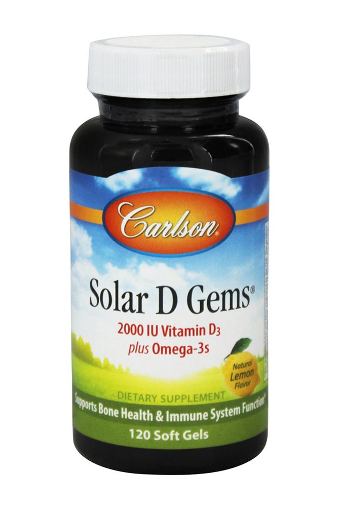In our experience, Carlson Labs are experts in oil-based vitamin formulas, and their formulations are very reliable for containing exactly the doses described on their labels. We have had consistently excellent results with our patients' vitamin D3 blood levels and health improvements using Solar D Gems. The quality of a vitamin D3 formula matters a great deal: Studies show that over-the-counter brands may contain a fraction of the labelled amount of vitamin D3, and we have tracked patients whose blood levels plummeted using commercial brands. Solar D Gems also includes synergistic ingredients to maximize the absorption and stability of the vitamin D3. It has modest but useful amounts of omega-3 fats, sourced from pristine Norwegian cod liver oil: Omega-3 fatty acids in their own right add to the heart protection, mood support, and anti-inflammatory joint benefits that vitamin D3 brings. And because vitamin D3 is a fat-soluble nutrient, its absorption is enhanced in an oil base. Solar D Gems has one of the vitamin E family, d-alpha tocopherol in its natural form, as an antioxidant to preserve freshness, which is important for all oil-based supplements that have a shelf-life longer than six months. It contains natural lemon extract to counter the cod liver oil, and patients report that it is tasty to chew!